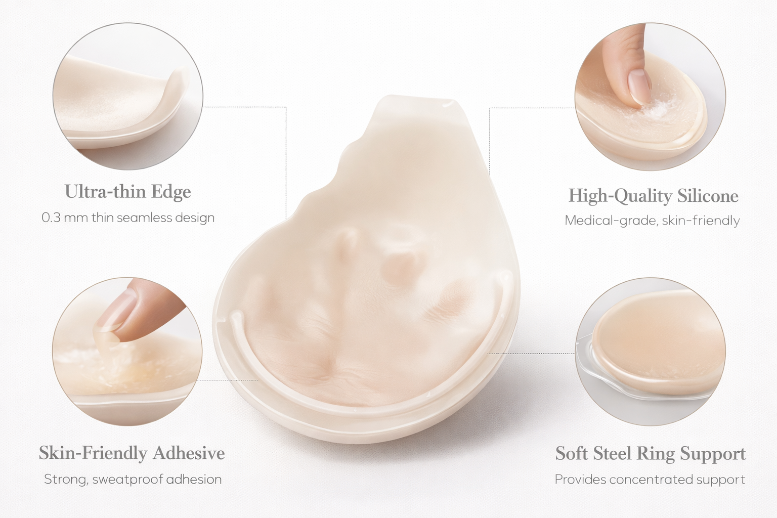A silicone bra works by combining flexible silicone structure, skin-activated adhesion, and pressure distribution to provide support, shaping, and invisibility without traditional straps or bands.