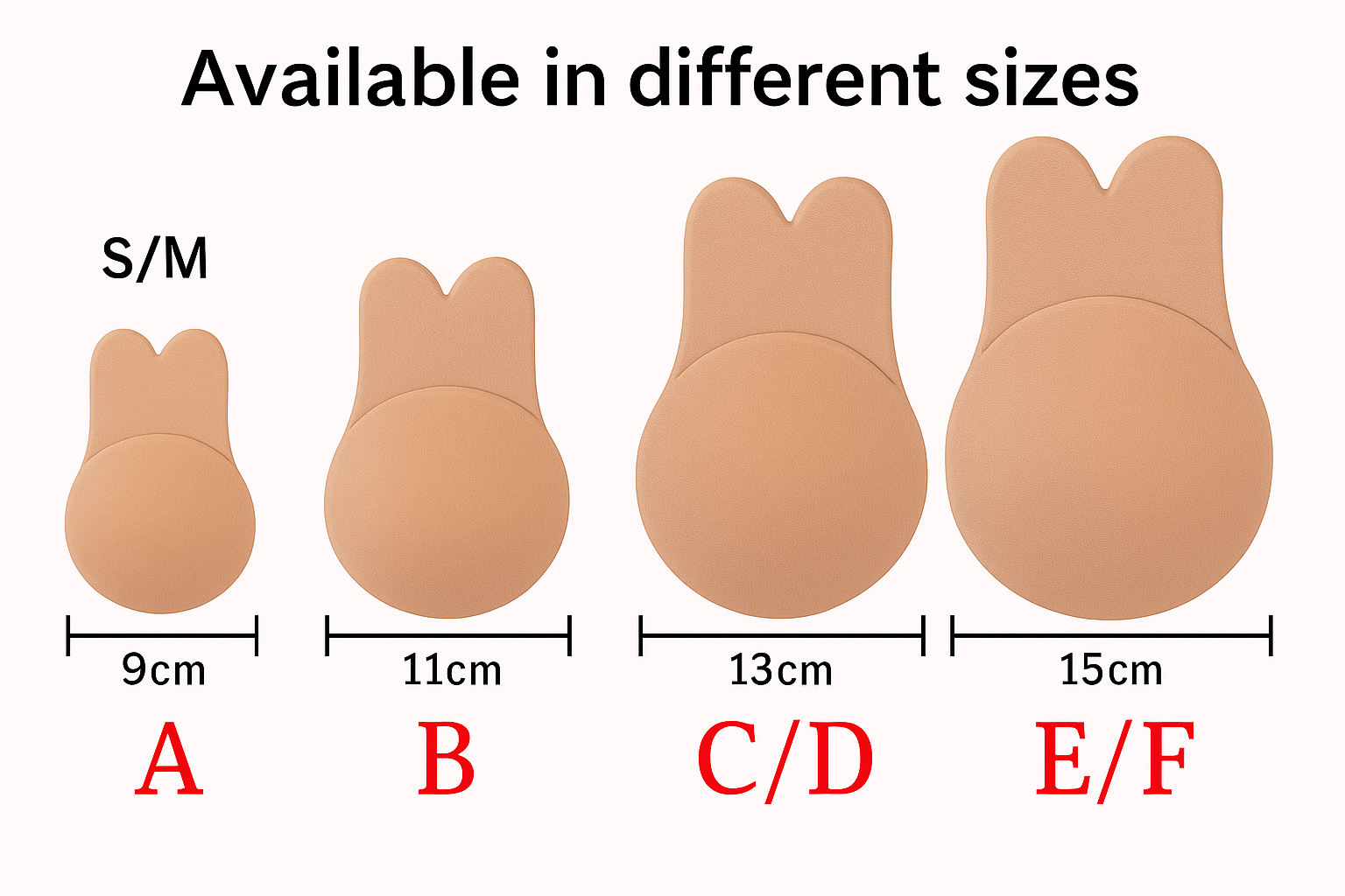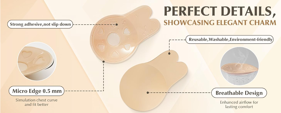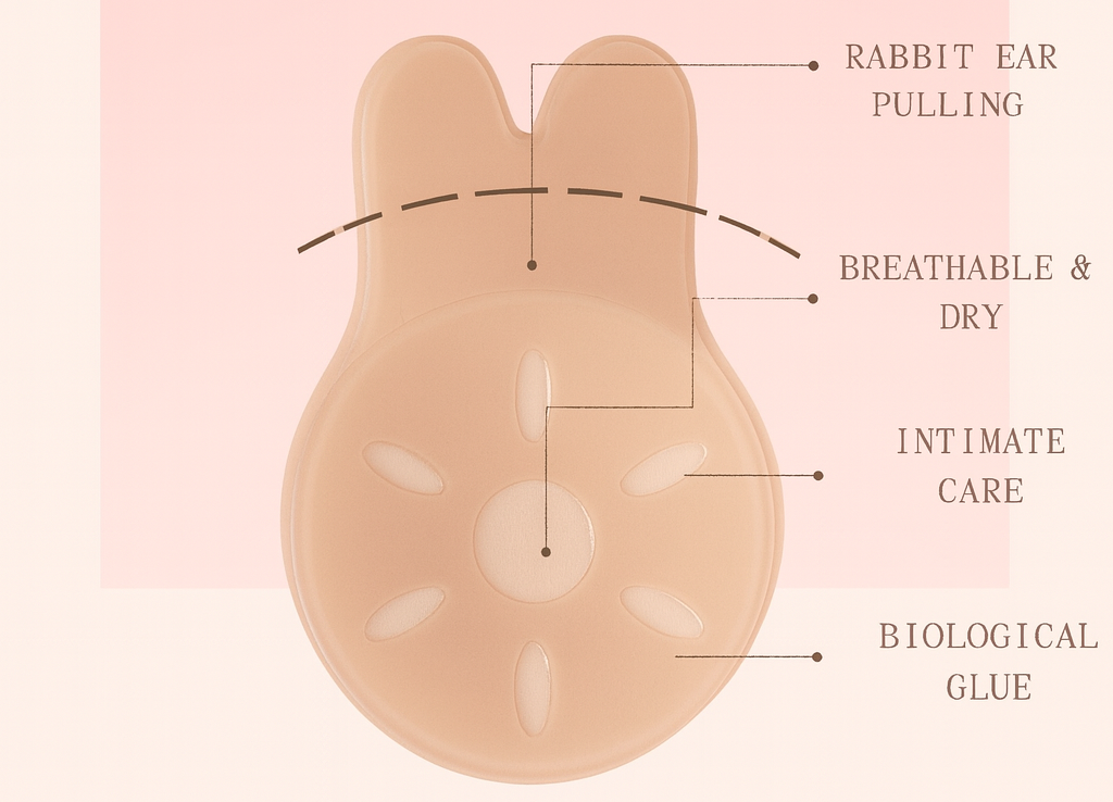 The innovative rabbit-ear shape provides a natural lifting effect while remaining invisible under clothing. Its sleek silhouette makes it ideal for strapless, backless, or low-cut outfits.